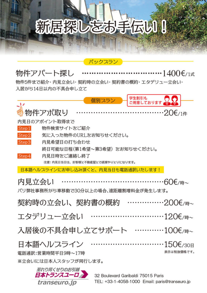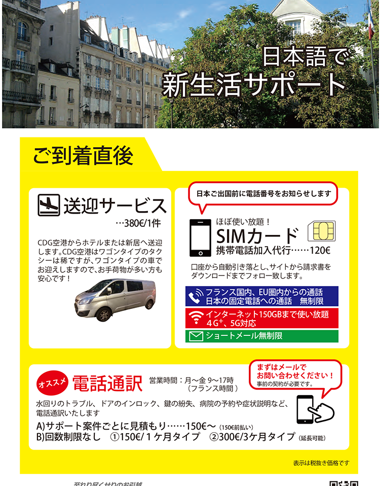 日本トランスユーロパリ15区事務所にてお引き渡しいたします。 ※弊社で引越しをご利用いただいたお客様には登録料無料でご利用いただけます!